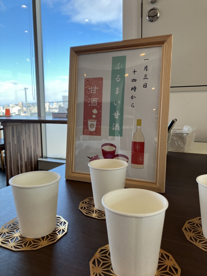 3日は甘酒を飲んで頂きました。