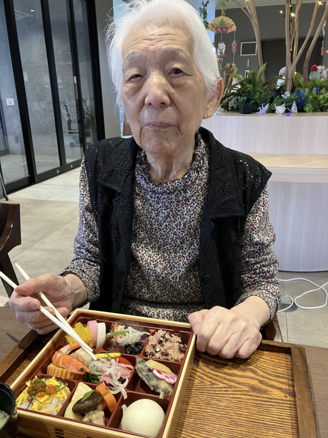 1月1日のお昼には恒例のおせち料理を召し上がっていただきました♪